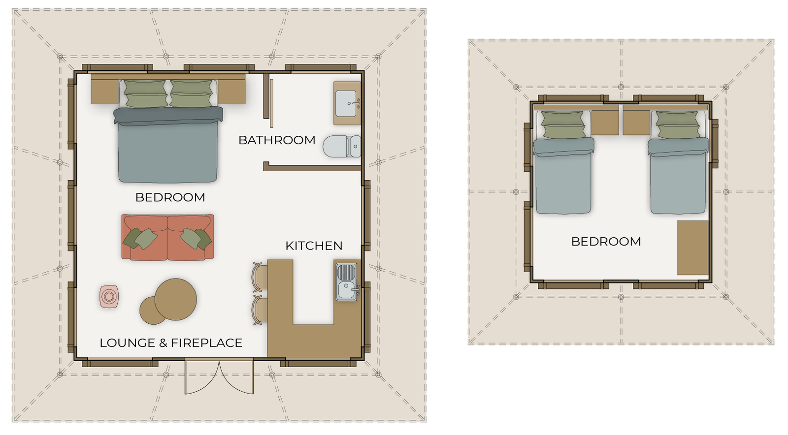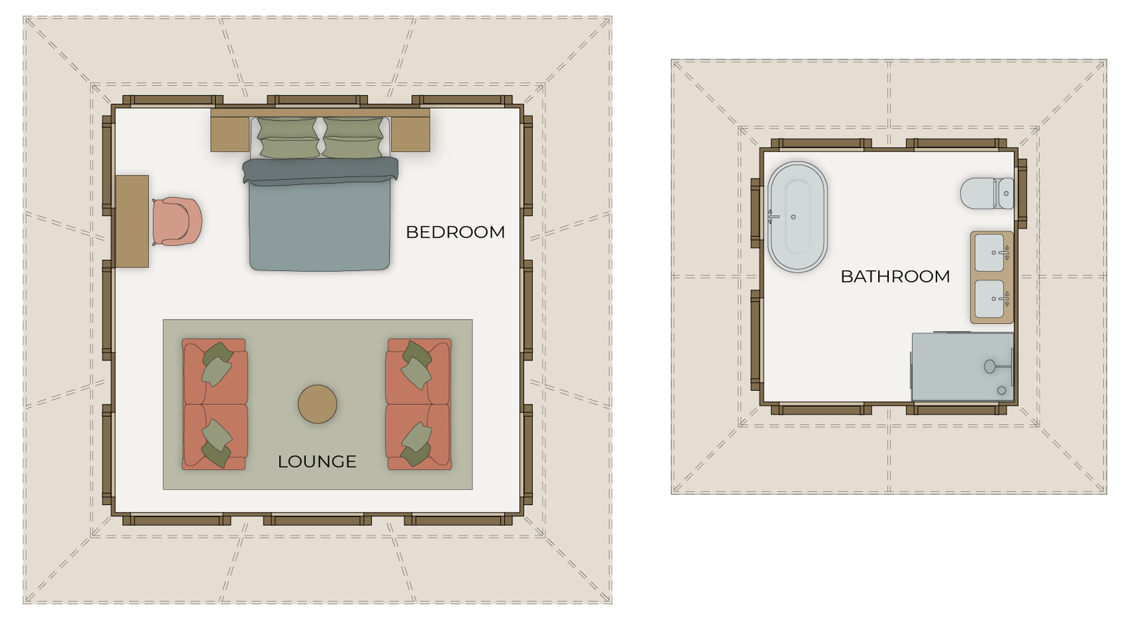 Inspired by iconic Meru rooflines, this elegant tent evokes the harmony and balance of classic Balinese temples. Its elevated roof transforms the in-room atmosphere, creating a sense of spacious calm. Featuring the luxurious privacy of a free-standing bathroom, the Bali epitomises small-footprint, high-immersion design.